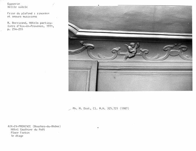 POP | Plateforme ouverte du patrimoineGypserie de la pièce du premier étage donnant sur le Cours Mirabeau, frise du plafond : rinceaux et amours musiciens