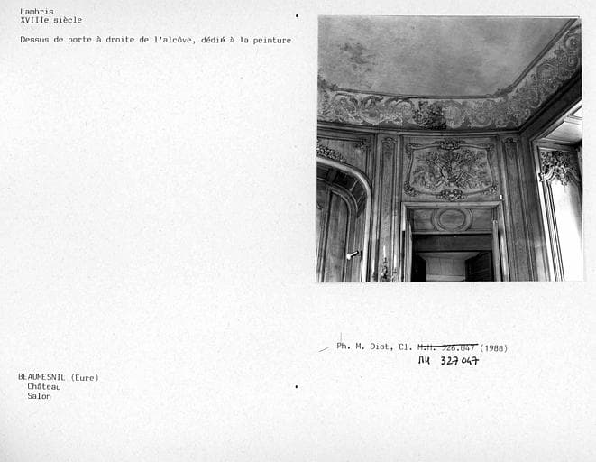 POP | Plateforme ouverte du patrimoineLambris du salon, dessus de porte à droite de l'alcôve, dédié à la peinture