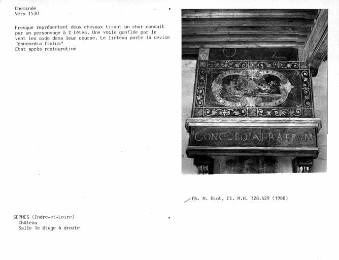 POP | Plateforme ouverte du patrimoineCheminée au premier étage, décor à fresque du manteau après restauration