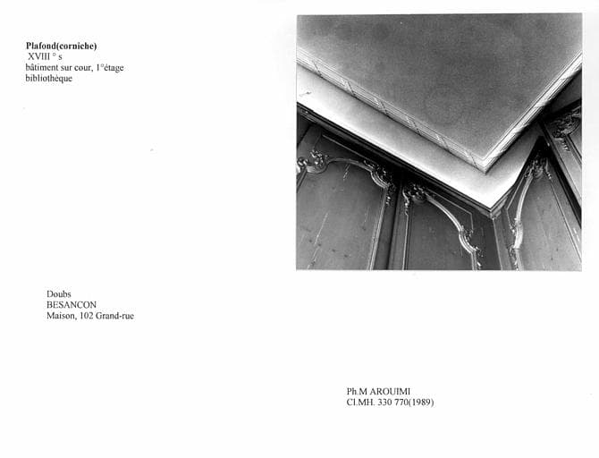 Bâtiment sur cour, corniche du plafond de la bibliothèque au premier étage
