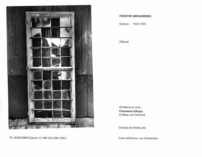 Châssis de fenêtre déposé (B). Face extérieure, vue d'ensemble