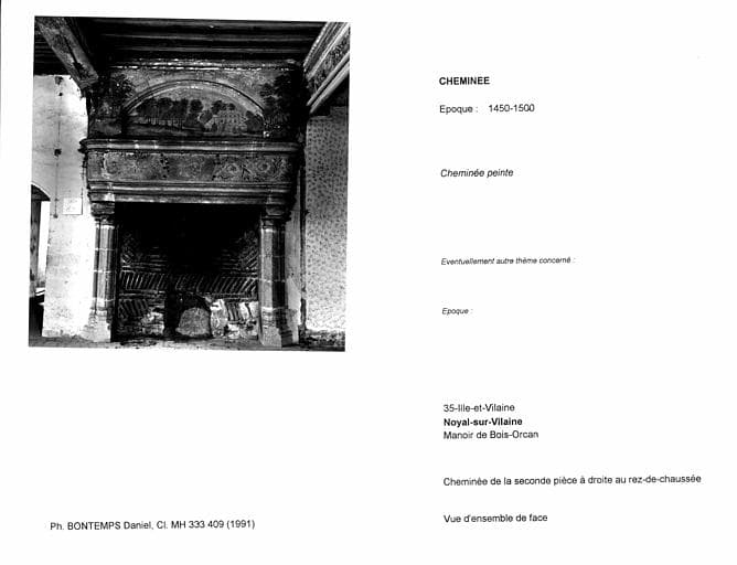 Cheminée de la seconde pièce à droite au rez-de-chaussée. Vue d'ensemble de face