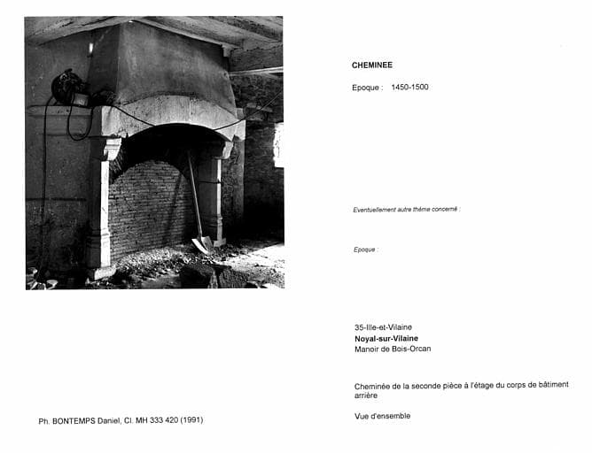 Cheminée de la seconde pièce à l'étage du corps de bâtiment arrière. Vue d'ensemble