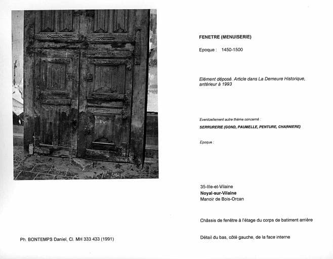 POP | Plateforme ouverte du patrimoineChâssis de fenêtre à l'étage du corps de batiment arrière, déposé. Détail du bas, côté gauche, de la face interne