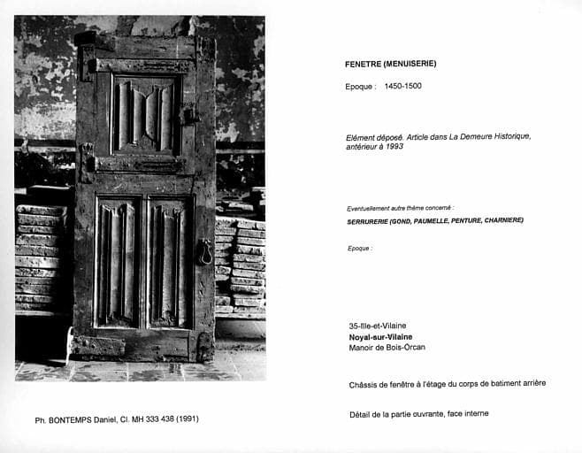 POP | Plateforme ouverte du patrimoineChâssis de fenêtre à l'étage du corps de batiment arrière, déposé. Détail de la partie ouvrante, face interne
