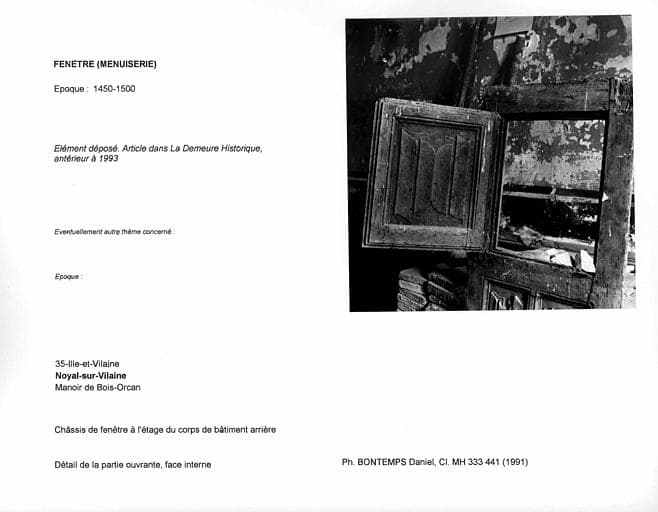 POP | Plateforme ouverte du patrimoineChâssis de fenêtre à l'étage du corps de bâtiment arrière, déposé. Détail de la partie ouvrante, face interne
