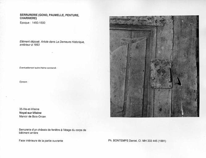 POP | Plateforme ouverte du patrimoineSerrurerie d'un châssis de fenêtre à l'étage du corps de bâtiment arrière. Face intérieure de la partie ouvrante
