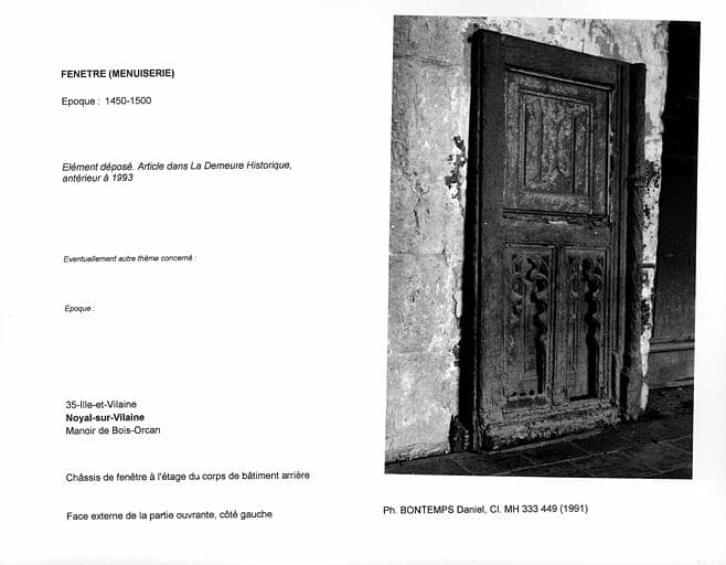 POP | Plateforme ouverte du patrimoineChâssis de fenêtre à l'étage du corps de bâtiment arrière, déposé. Face externe de la partie ouvrante, côté gauche