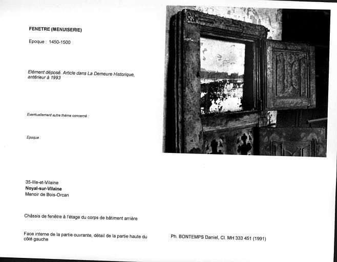 POP | Plateforme ouverte du patrimoineChâssis de fenêtre à l'étage du corps de bâtiment arrière, déposé. Face interne de la partie ouvrante, détail de la partie haute du côté gauche