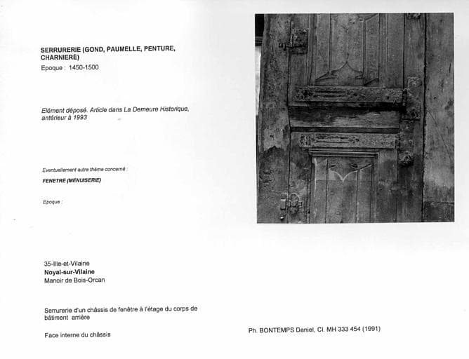 Serrurerie d'un châssis de fenêtre à l'étage du corps de bâtiment arrière. Face interne du châssis