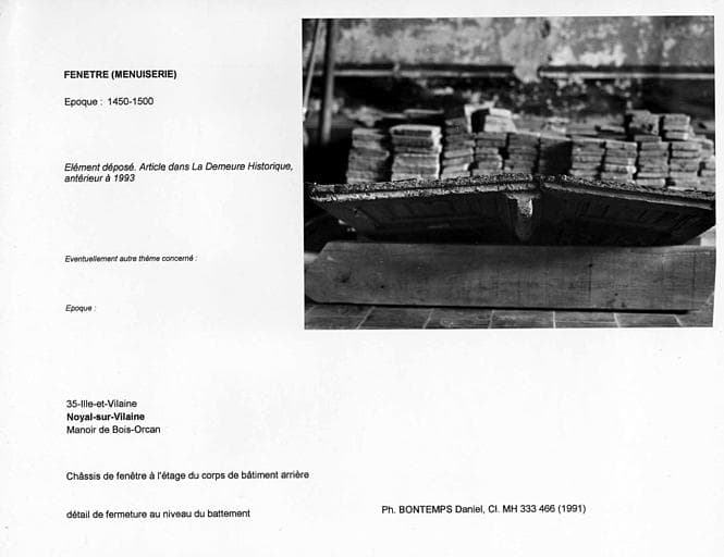 POP | Plateforme ouverte du patrimoineChâssis de fenêtre à l'étage du corps de bâtiment arrière, déposé. Détail de fermeture au niveau du battement