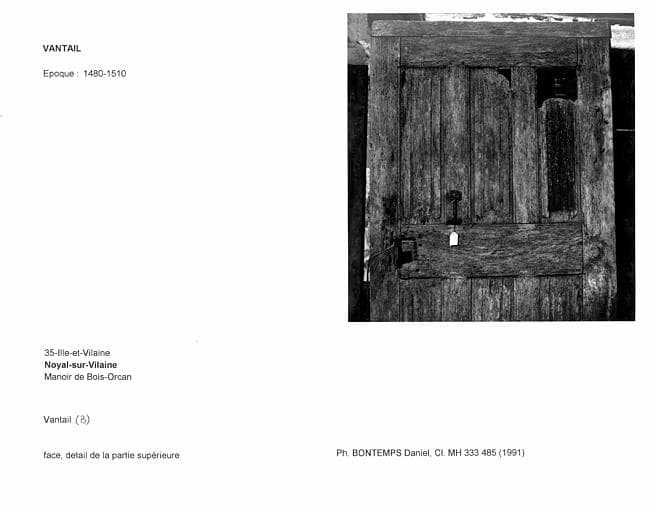 Vantail de porte déposé. Face, detail de la partie supérieure
