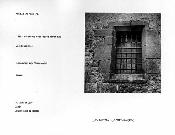 POP | Plateforme ouverte du patrimoineCellier du chapitre (ancien). Grille d'une fenêtre de la façade postérieure. Vue d'ensemble
