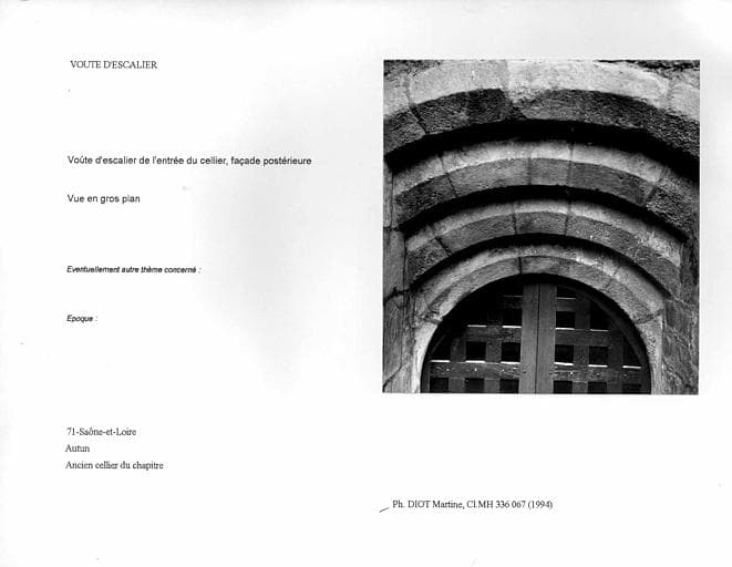 Cellier du chapitre (ancien). Voûte d'escalier de l'entrée du cellier, façade postérieure. Vue en gros plan