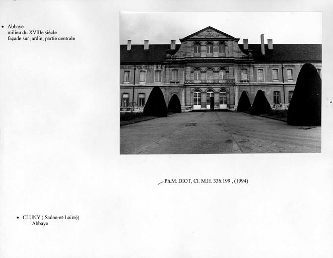 Abbaye. Façade sur jardin, partie centrale ; Porte gauche, partie haute