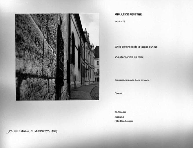 POP | Plateforme ouverte du patrimoineGrille de fenêtre de la façade sur rue. Vue d'ensemble de profil