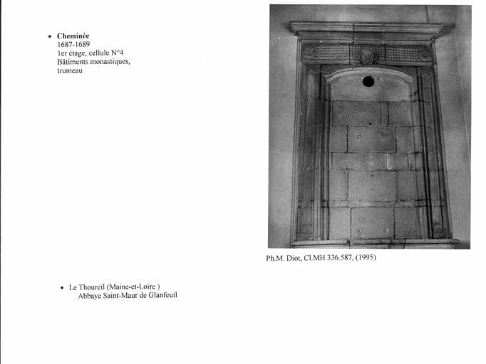 Cheminée de la cellule n°4 au premier étage, bâtiments monastiques. Trumeau