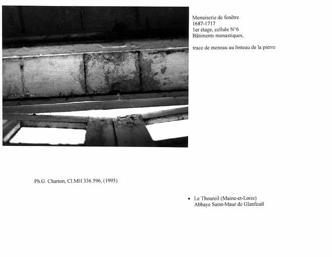 Fenêtre dans la cellule n°6 au premier étage, bâtiments monastiques. Détail de la trace d'un meneau sur le linteau