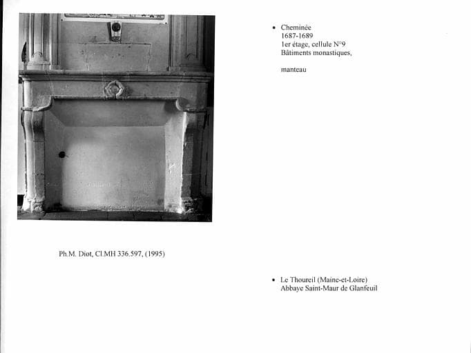 Cheminée de la cellule n°9 au premier étage, bâtiments monastiques. Manteau