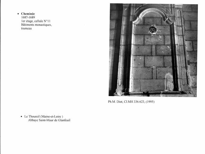 Cheminée de la cellule n°11 au premier étage, bâtiments monastiques. Trumeau