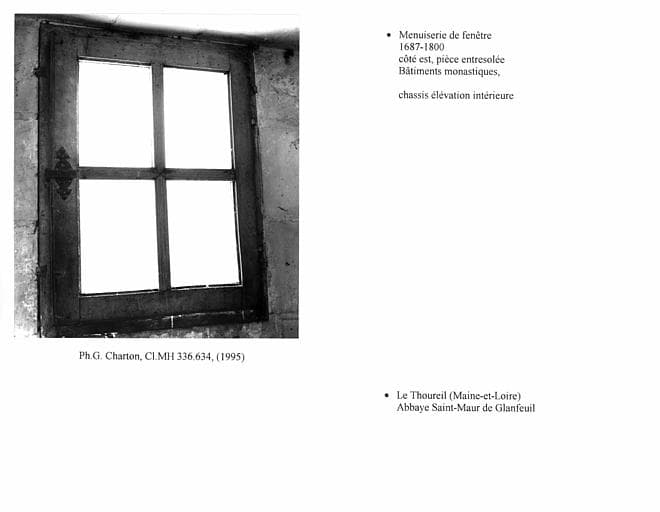 Fenêtre de la pièce entresolée, côté est, bâtiments monastiques. Face intérieure du châssis