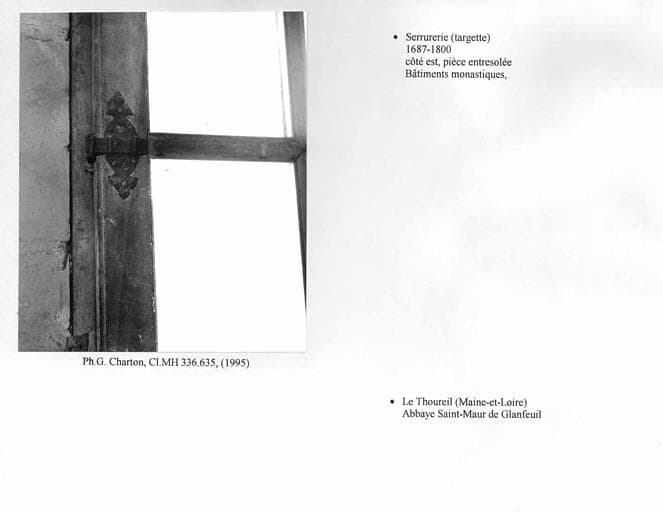 POP | Plateforme ouverte du patrimoinetargette sur fenêtre dans la pièce entresolée, côté est, bâtiments monastiques. Face intérieure du châssis