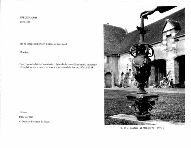 Epi de faîtage en plomb du pavillon d'entrée de l'aile nord. Elévation