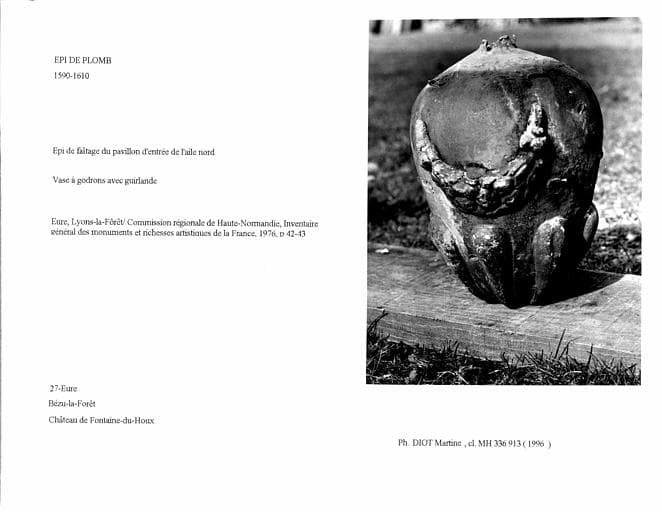 POP | Plateforme ouverte du patrimoineEpi de faîtage en plomb du pavillon d'entrée de l'aile nord. Vase à godrons avec guirlande