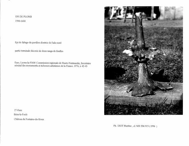POP | Plateforme ouverte du patrimoineEpi de faîtage en plomb du pavillon d'entrée de l'aile nord. Partie terminale décorée de deux rangs de feuilles