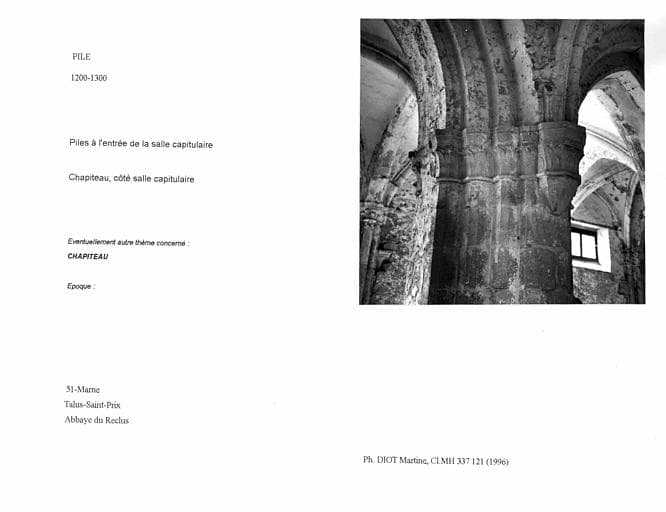 POP | Plateforme ouverte du patrimoinePiles à l'entrée de la salle capitulaire. Chapiteau, côté salle capitulaire