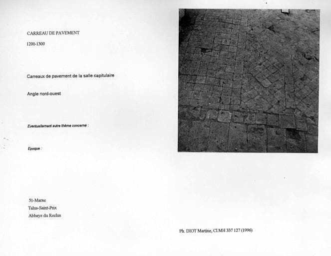 POP | Plateforme ouverte du patrimoineCarreaux de pavement de la salle capitulaire. Angle nord-ouest