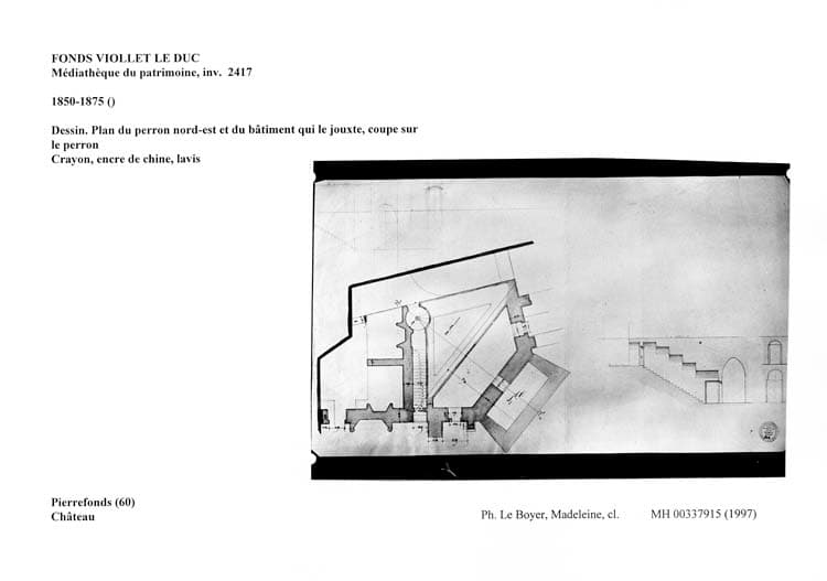 POP | Plateforme ouverte du patrimoineAile nord-est. Dessin. Plan du perron nord-est et du bâtiment qui le jouxte, coupe sur le perron