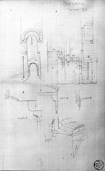 Dessins : enceinte intérieure, tour 36, croquis divers, avant restauration
