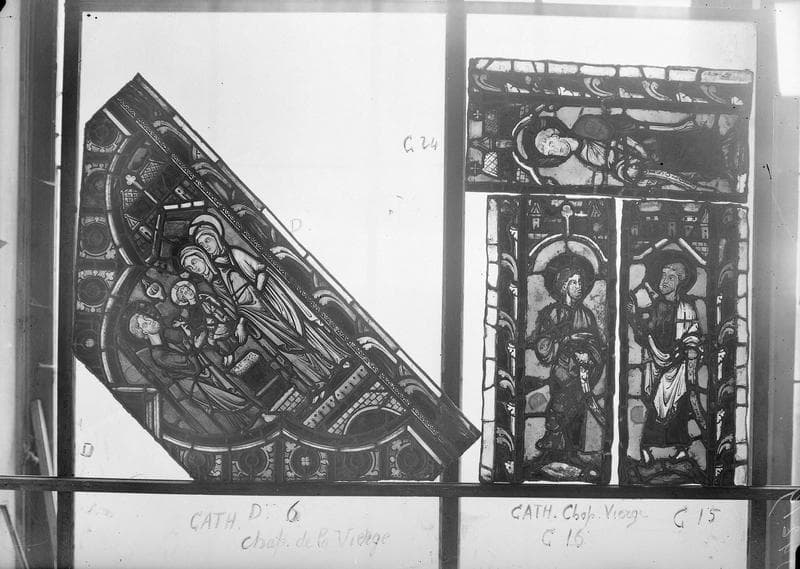 Panneau de vitrail de la chapelle de la Vierge, travées C, D et rosace
