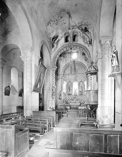POP | Plateforme ouverte du patrimoineVue intérieure de la nef vers le choeur, peintures murales