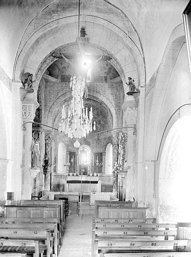 POP | Plateforme ouverte du patrimoineVue intérieure de la nef vers le choeur. Chapiteaux historiés. Peintures murales