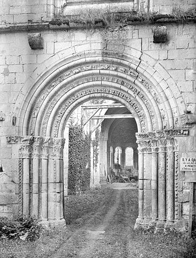 Eglise : Façade ouest, portail et vue en perspective de la nef