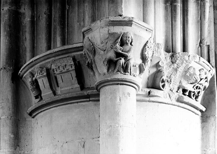 Chapiteaux sculptés : scènes de littérature du Moyen-Age