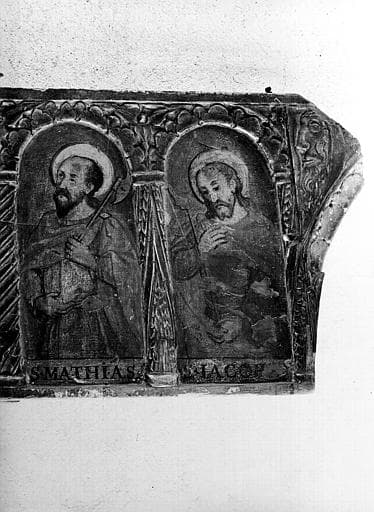 Bois peint et sculpté « Jésus et les douze apôtres », détail : saint Matthias et saint Jacob