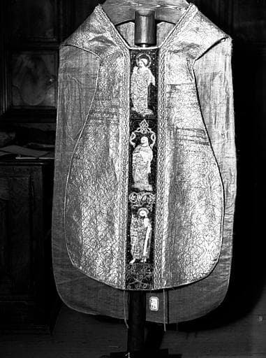 Chasuble de drap d'or (devant), orfrois brodés à personnages (15e)