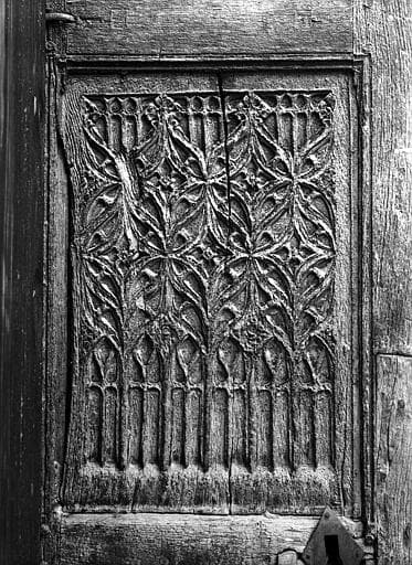 Portail ouest, panneau sculpté de la porte intérieure : décor gothique