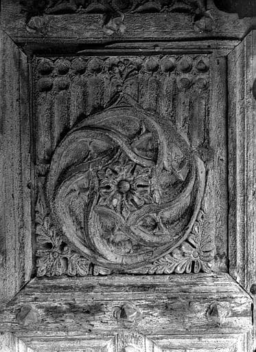 Portail sud, panneau sculpté de la porte : décor gothique