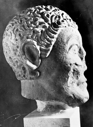 POP | Plateforme ouverte du patrimoineStatue, tête virile aux cheveux vermiculés, MH 46-4 : profil droit