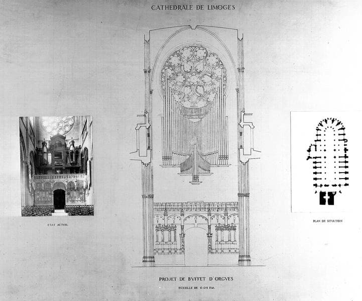 POP | Plateforme ouverte du patrimoinePlan : projet de buffet d'orgues. Vue intérieure de la nef vers l'ouest. Plan de situation