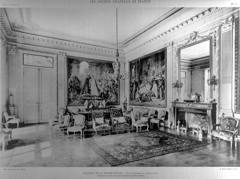 Vue intérieure du grand salon avec une tapisserie des Gobelins représentant l'histoire d'Esther