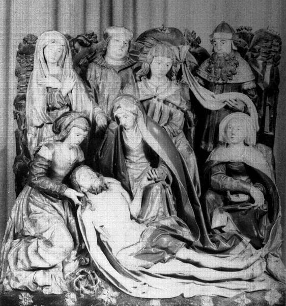 Groupe sculpté en bois polychrome : la déposition de croix
