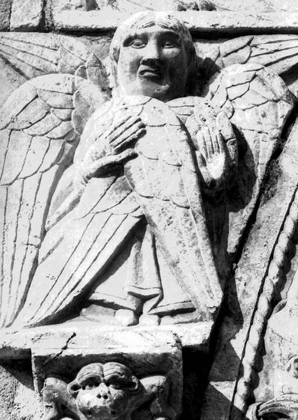 POP | Plateforme ouverte du patrimoinePortail du logis, piédroit gauche : séraphin sur une console figurant une tête de singe
