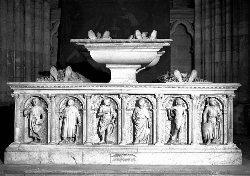 POP | Plateforme ouverte du patrimoineTombeau des ducs d'Orléans. Gisants de Louis de France, son épouse Valentine de Milan, et son fils Charles (pieds). Soubassement : statues des Apôtres
