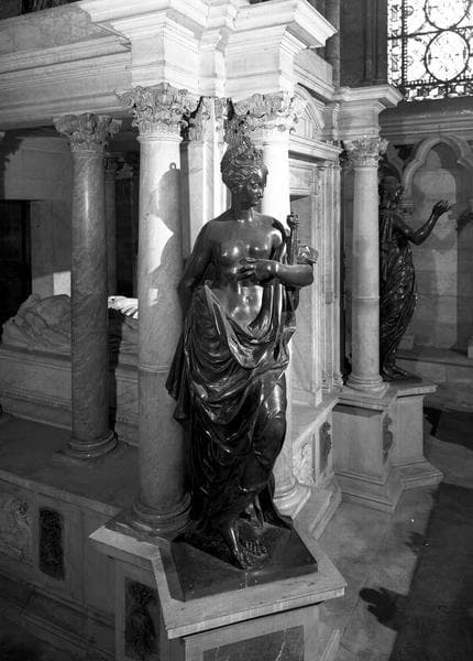 Tombeau d'Henri II et de Catherine de Médicis : statue d'angle en bronze : vertu cardinale