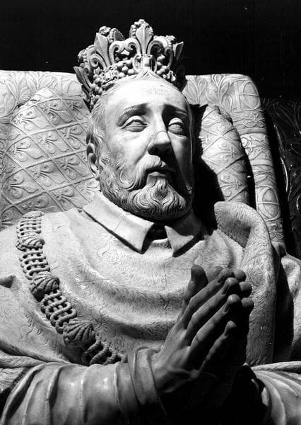 Tombeau de Henri II et de Catherine de Médicis : gisant de Henri II en costume de cour (buste de face)